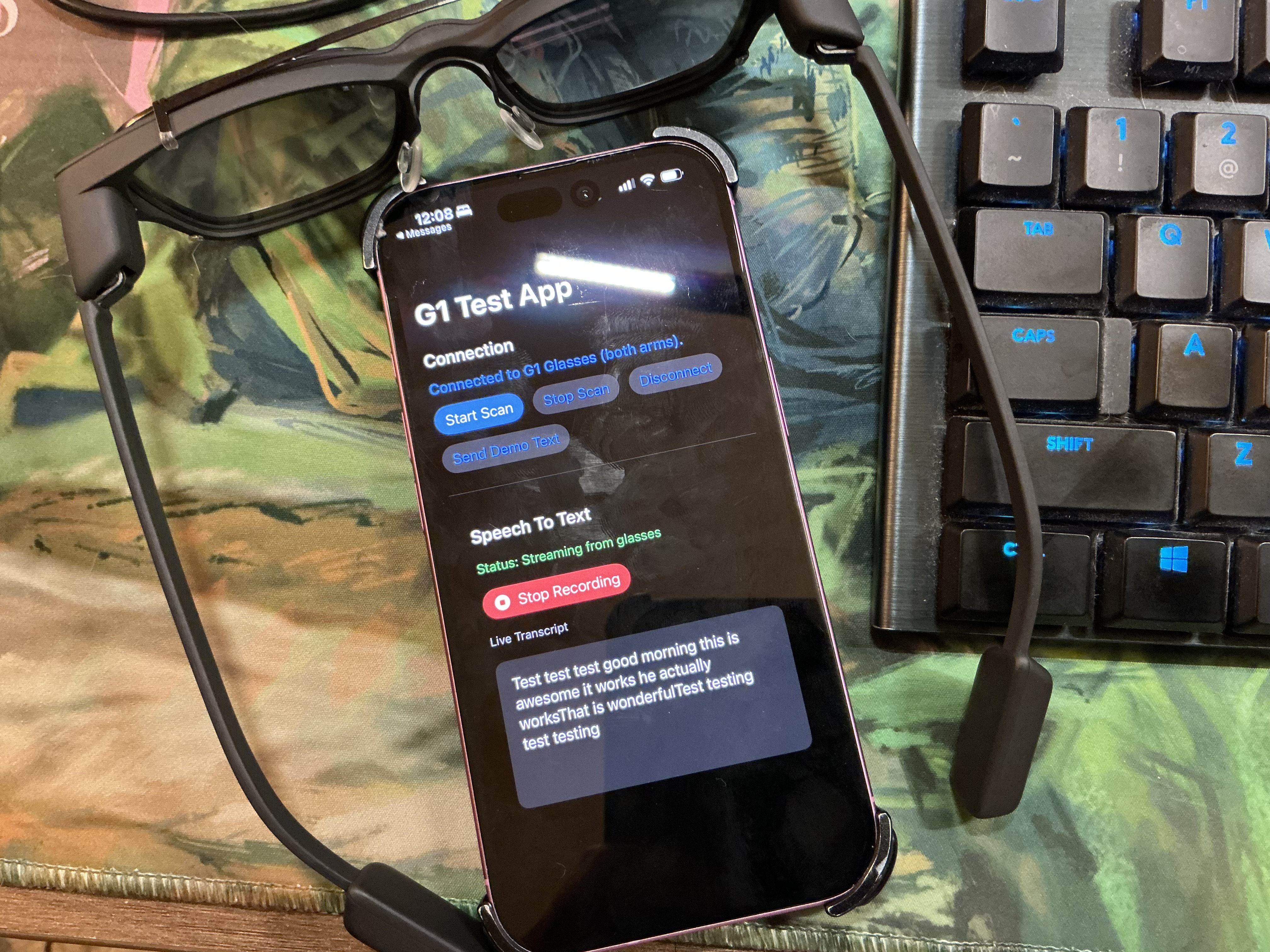 By the end of this phase I had a scrappy little test UI that streamed audio from the glasses and showed me a live transcript right on the HUD. It wasn’t glamorous, but it was a working foundation.